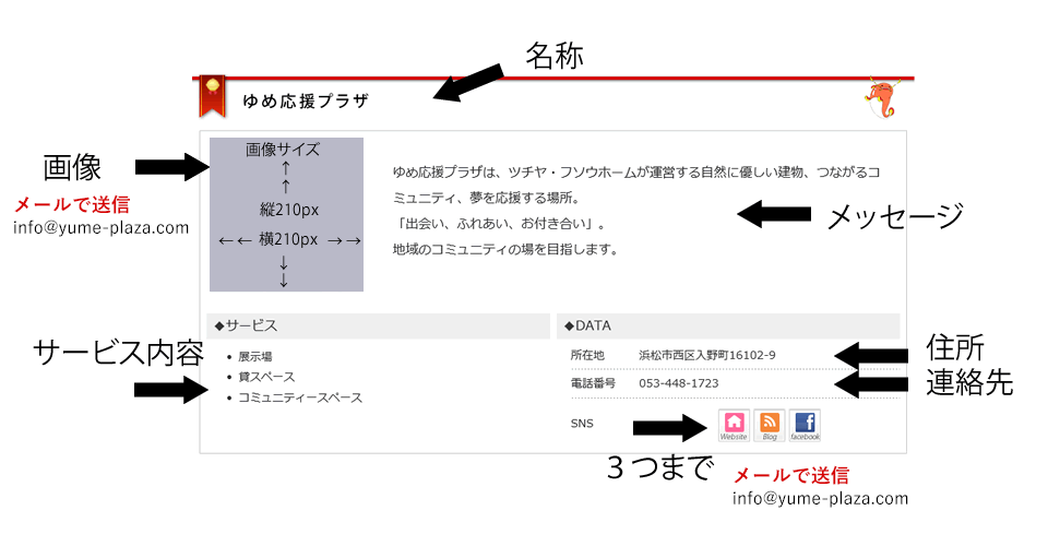 | ゆめ応援プラザ WEB広告枠 WEB会員掲載 記載事項 |